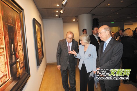 右起(希腊前总理库斯坦提诺斯及夫人、希腊首富赛奥哈拉基斯基金会主席在参观