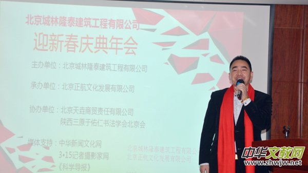 本网讯 由北京城林隆泰建筑工程公司举办、北京正航文化发展有限公司承办的北京城林隆泰2018迎新春庆典年会于2018年元月13日上午10时许在北京君颐华润五星级大酒店隆重举行。中国企业家世纪论坛副主席、北京正航文化董事长霍根正,北京房地产商会会长戚敬东,北京第二外国语学院教授、博导孟根龙,茅台国宴至尊酒厂董事长孟庆尊,《科学导报·今日文教》主编靳新国,著名书画艺术家成元德、冯耀武、张燕、马牧、刘泽、杨根柱,武警文工团青年歌唱演员冯金伟,北京大学歌剧研究院歌唱演员李玫,著名表演艺术家、国家一级演员、毛泽东扮演者赵国良,周恩来扮演者徐敏骞,蒋介石扮演者尹一平等近200人参加了活动。